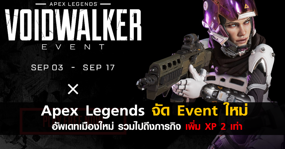 อีกทั้งยังมี Challenges ให้เราเคลียร์เพื่อรับของขวัญประจำอีเว้นท์ดังที่กล่าวถึงแล้ว ดังเช่นว่า สรับประทานอาวุธต่างๆ ตราสัญลักษณ์ ฯลฯ แถมยังมีสกินสุดลิมิเต็ดสำหรับอีเว้นท์นี้ขายโดยเฉพาะให้กับผู้แสดงเฉพาะ Wraith, Lifeline, Gibraltar และ Bangalore นี้ด้วยนะคะ Event Voidwalker เริ่มเล่นได้ตั้งแต่วันนี้ ไปจนถึงวันที่ 17 เดือนกันยายนที่จะถึงนี้ พร้อมด้วยการเพิ่มค่า XP สองเท่าให้กับผู้เล่นจาก 5 อันดับแรก 6 – 9 เดือนกันยายนที่จะถึงนี้